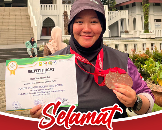 Juara 2 Tim Barebow Umum Putri dan Juara 3 Bantalan Barebow Umum Putri pada Piala Dinas Pemuda dan Olahraga Kabupaten Bogor 2025. Reisya Andara (20230700004) mahasiswi Fakultas Sains dan Teknologi Program Studi Sistem Informasi | |