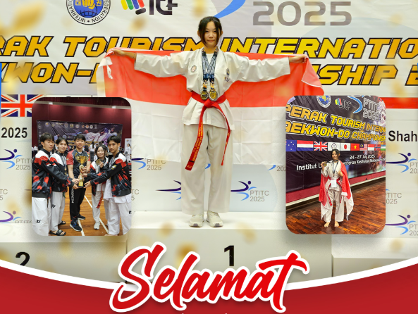 Medali Emas pada Pada Perak Tourism International Taekwondo Championship, Malaysia. Kategori Sparring/Pattern U50dari klub Indonesia Taekwondo Federation (IDTF). Eugenia Viorent Dwi Lianto, Mahasiswa Program Studi Ilmu Komunikasi Fakultas Sosial dan Humaniora. | |